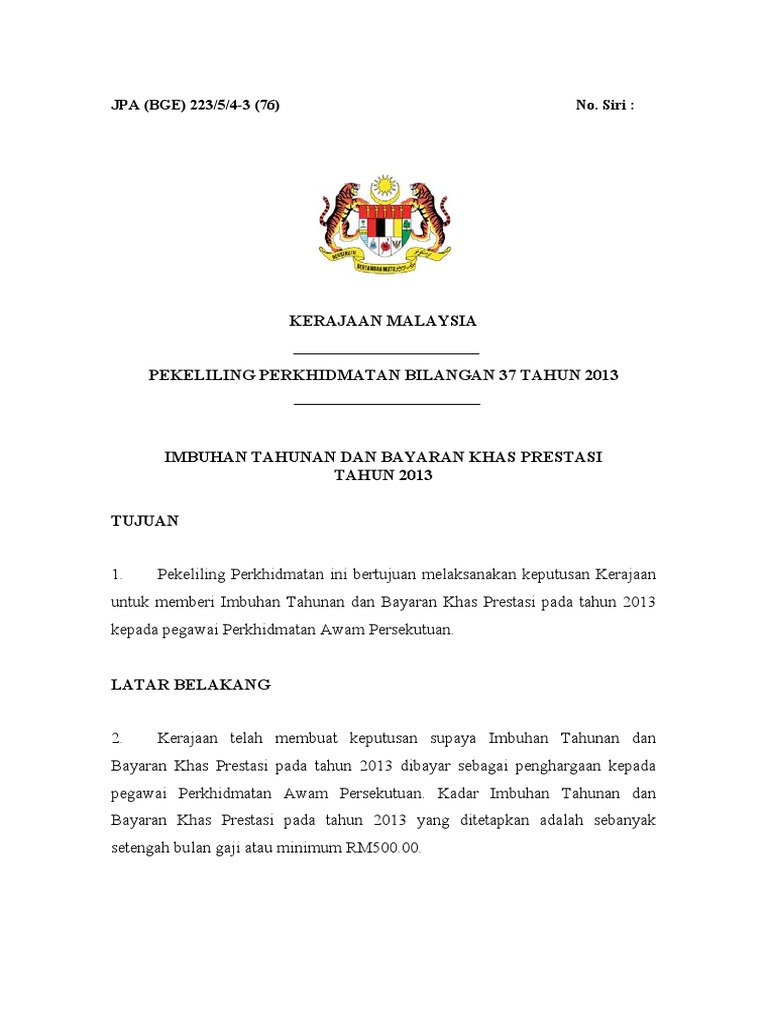 Pekeliling Perkhidmatan Bilangan 37 Tahun 2013 Pdf